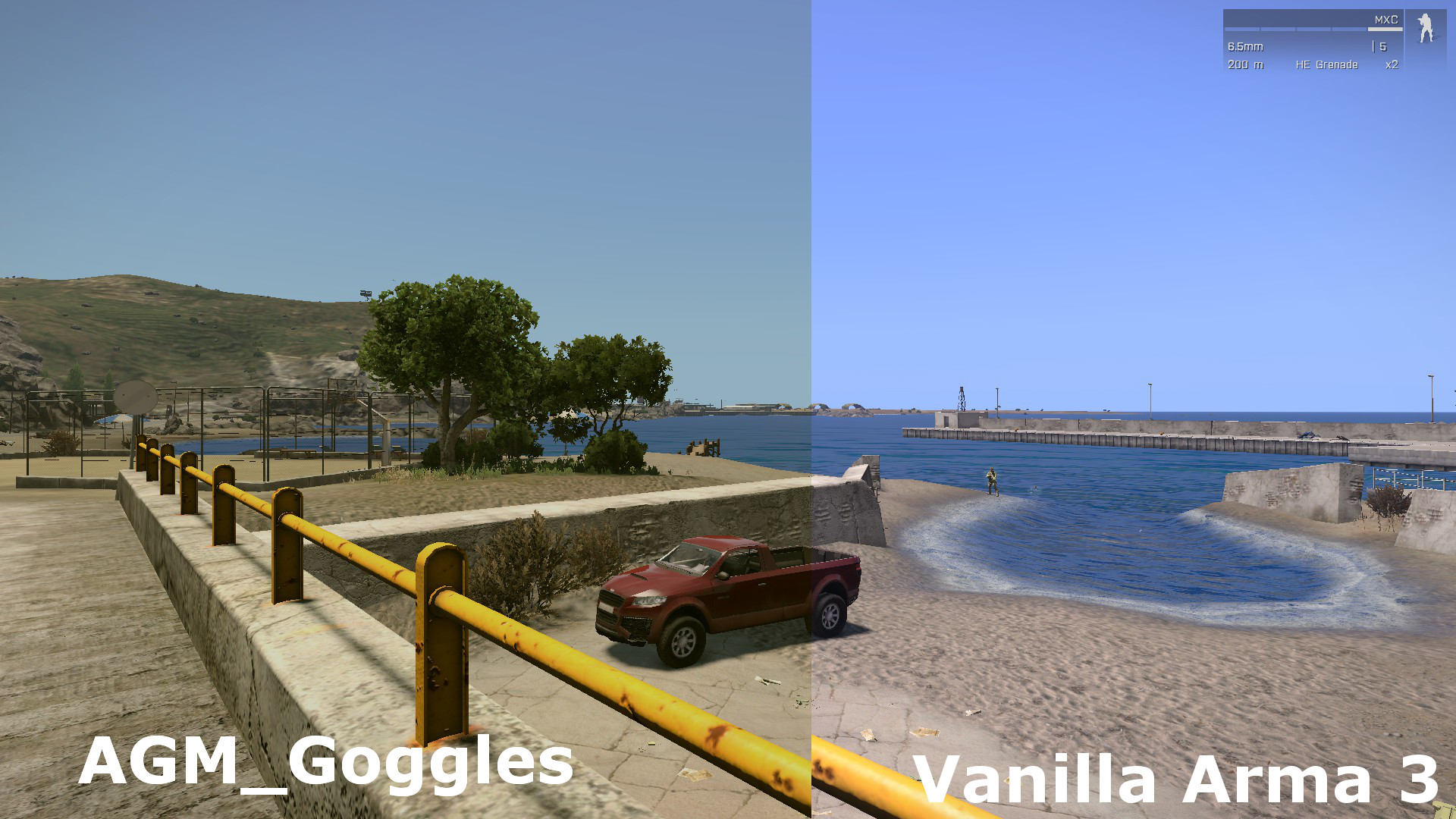 AGM_Goggles takes Arma 3's cosmetic eye-wear and adds actual in-game benefit to wearing glasses/goggles, while also adding improved cosmetic features (colour tint, dust, rain, cracks).